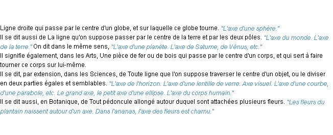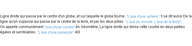 Ancienne signification du terme « axe », parution de 1835, dictionnaire académique Français.