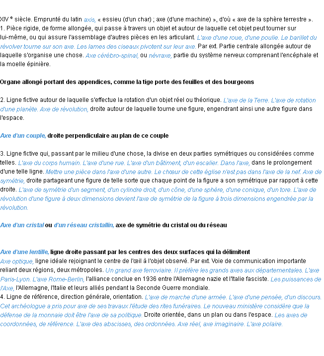 Signification du terme « axe », parution de 1986, dictionnaire académique Français.