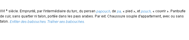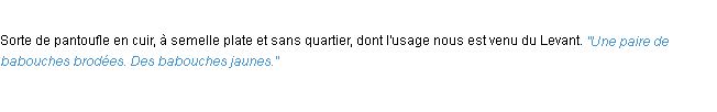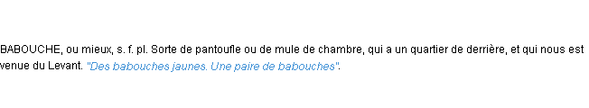 Ancienne définition académique pour le terme « babouche » (parue en 1835).