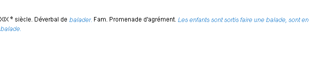 Définition issue du dictionnaire wiktionary pour le mot « balade ».