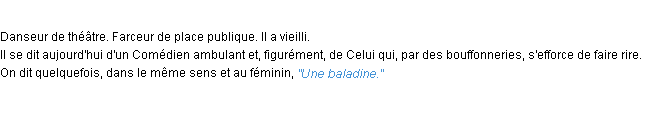 Ancienne définition développée dans dictionnaire académique, 1798.Merci à Corin et Léa pour la numérisation du mot baladin.