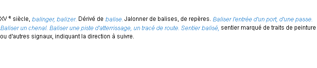 Ancienne signification du terme « baliser », parution de 1835, dictionnaire académique Français.