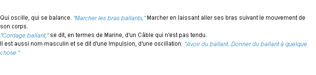 Signification développée en 1876 par Mr Littré (dictionnaire dit d’Emile Littré).Merci à Hugues et Florentin pour la numérisation du mot ballant.