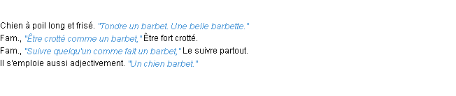 Signification éditée en 1932 pour le terme « barbet » par l’Académie Française.