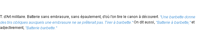 Définition du mot « barbette » par Emile Littré (édition de 1876).