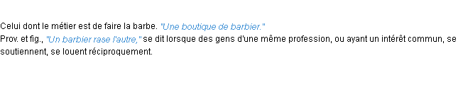 Signification du terme « barbier », parution de 1932, dictionnaire académique Français.
