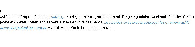 Ancienne définition « barde » du dictionnaire académique Français, parution de l’année 1798.Merci à Arienne et Jérôme pour la numérisation du mot barde.
