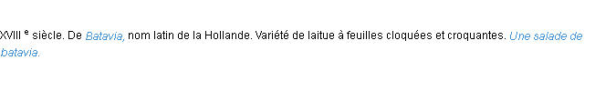 Définition du mot « batavia » par l’équipe de la-definition.fr (édition de 2011).Merci à Julien et Rémy pour la numérisation du mot batavia.