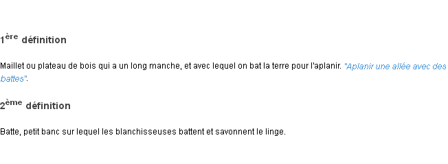 Définition de « batte » de source académique (Académie Française, parution de 1932).