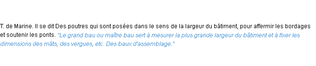 Signification éditée en 2010 par l’équipe de la-definition.fr.Merci à Eléonore et Yves pour la numérisation du mot bau.