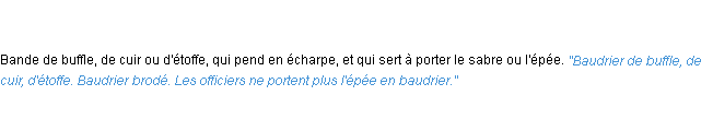 Ancienne définition développée dans dictionnaire académique, 1798.Merci à Stéphane et Adrien pour la numérisation du mot baudrier.