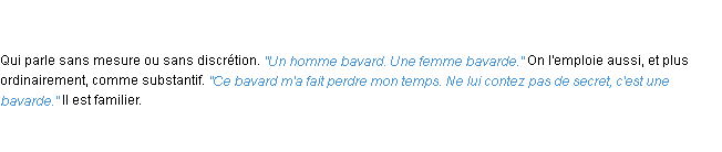 Définition « bavard » du dictionnaire académique Français, parution de l’année 1932.