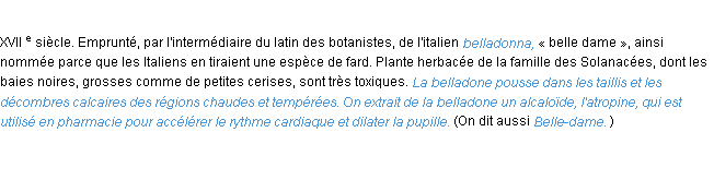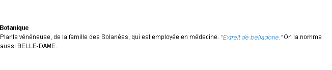 Définition « belladone » du dictionnaire académique Français, parution de l’année 1986.