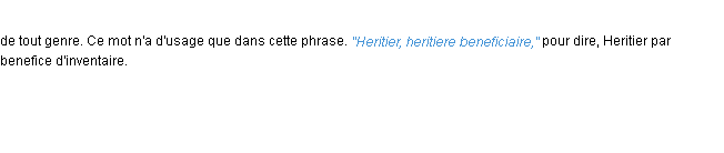 Ancienne signification parue en 1694 dans dictionnaire de l’Académie Française.Merci à Arnaude et Désirée pour la numérisation du mot beneficiaire.