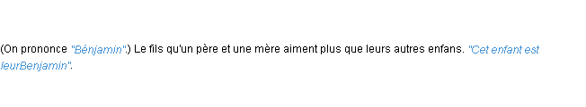 Ancienne définition de l’Académie Française (édition de 1798) pour le mot « benjamin ».Merci à Eléonore et Armel pour la numérisation du mot benjamin.