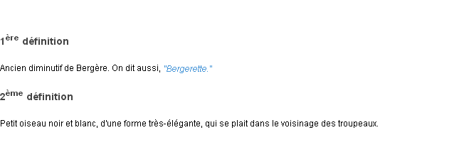 Définition « bergeronnette » du dictionnaire académique Français, parution de l’année 1986.