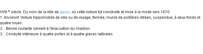Ancienne signification éditée en 1798 pour le terme « berline » par l’Académie Française.Merci à François et Antoine pour la numérisation du mot berline.