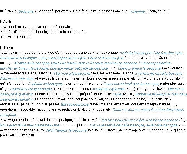 Ancienne signification parue en 1798 dans dictionnaire de l’Académie Française.Merci à Aurelien et Aurélie pour la numérisation du mot besogne.