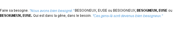 Définition de l’Académie Française (édition de 1986) pour le mot « besogner ».