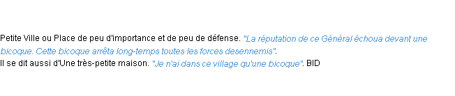 Signification éditée en 1932 pour le terme « bicoque » par l’Académie Française.