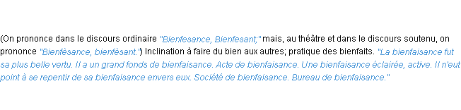 Ancienne signification du terme « bienfaisance », parution de 1798, dictionnaire académique Français.Merci à Sylvianne et Claire pour la numérisation du mot bienfaisance.