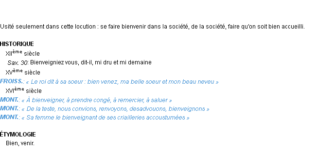 Définition du mot « bienvenir » par Emile Littré (édition de 1876).- Autres Recherches