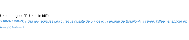 Définition de « biffe » de source académique (Académie Française, parution de 1986).