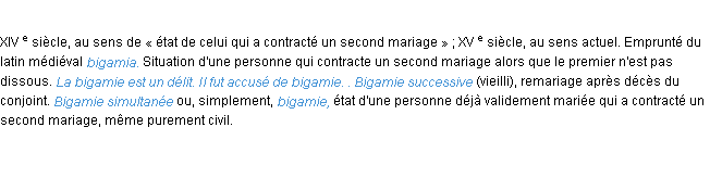Définition du mot « bigamie » par l’Académie Française (édition de 1932).