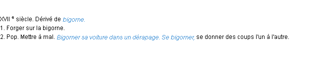 Définition académique pour le terme « bigorner » (parue en 1986).
