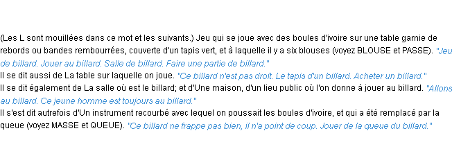 Ancienne définition « billard » du dictionnaire académique Français, parution de l’année 1835.