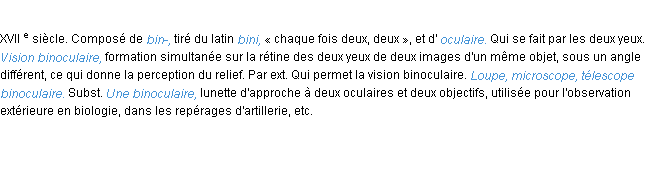 Signification du terme « binoculaire », parution de 1986, dictionnaire académique Français.