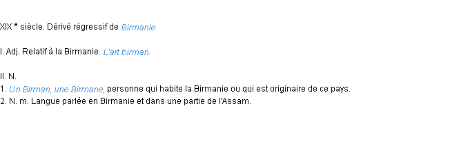 Signification éditée en 2008 pour le terme « birman » par l’équipe de wiktionary France.- Autres Recherches