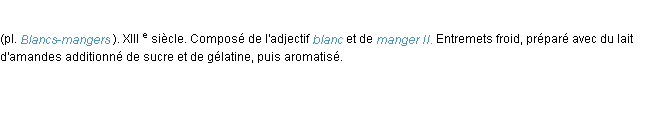 Signification du terme « blanc-manger », parution de 1876 (dictionnaire le Littré).Merci à Florianne et Eloi pour la numérisation du mot blanc-manger.