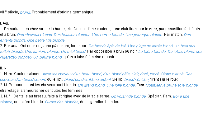 Définition de « blond » de source académique (Académie Française, parution de 1932).