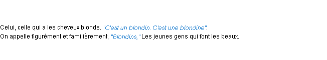 Ancienne signification issue du dico de l’Académie Française, parue en 1798.Merci à Cyrille et Thierry pour la numérisation du mot blondin.