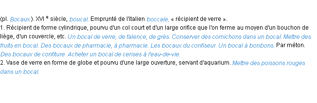 Signification éditée en 1932 pour le terme « bocal » par l’Académie Française.