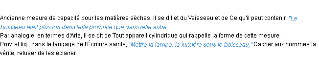 Définition « boisseau » du dictionnaire académique Français, parution de l’année 1986.