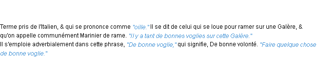 Ancienne définition académique pour le terme « bonne voglie » (parue en 17962).