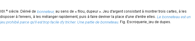 Signification du terme « bonneteau », parution de 1986, dictionnaire académique Français.