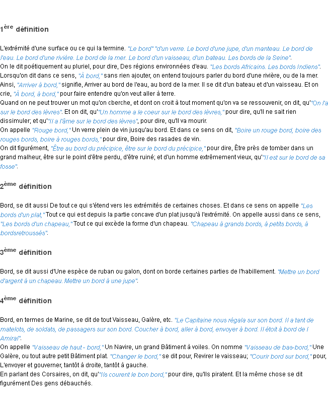 Signification parue en 2009 (source la-definition.fr).Merci à Françoise et Nicolette pour la numérisation du mot bord.