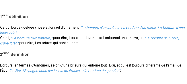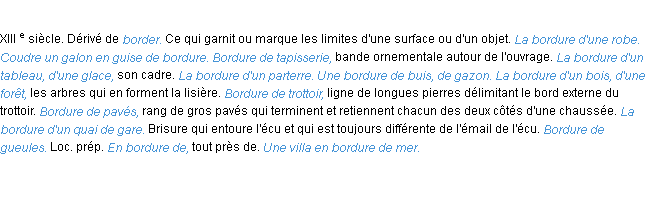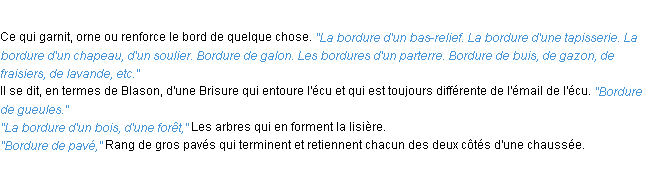 Signification du terme « bordure », parution de 1932, dictionnaire académique Français.