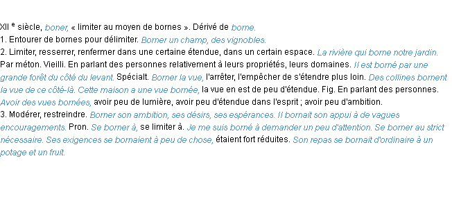 Ancienne définition développée dans dictionnaire académique, 1798.Merci à Guillaume et Léonard pour la numérisation du mot borner.