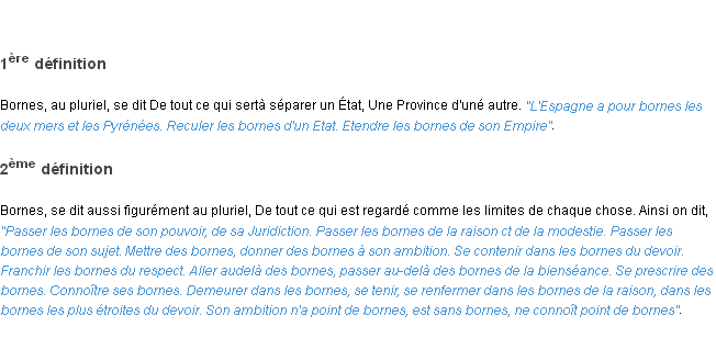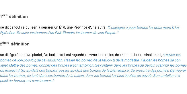 Ancienne définition « bornes » du dictionnaire académique Français, parution de l’année 1798.