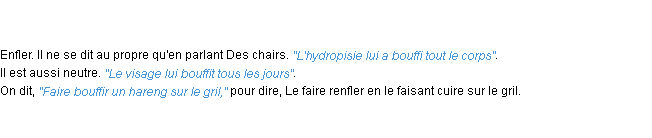 Ancienne signification éditée en 1835 pour le terme « bouffir » par l’Académie Française.