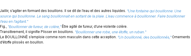 Définition académique pour le terme « bouillonner » (parue en 1932).
