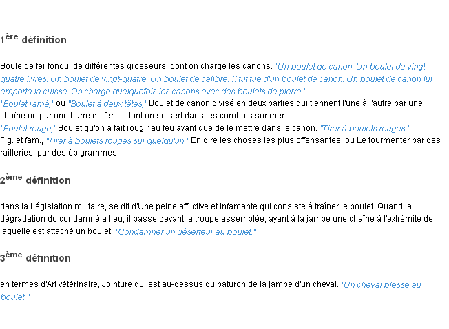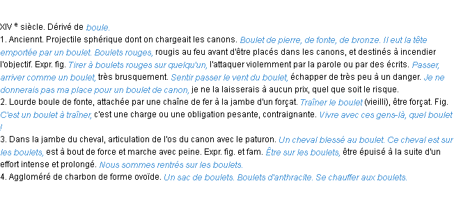 Définition du mot « boulet » par l’Académie Française (édition de 1932).