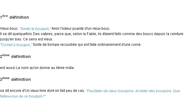 Ancienne signification éditée en 1835 pour le terme « bouquin » par l’Académie Française.
