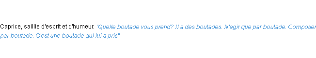 Signification du terme « boutade », parution de 1986, dictionnaire académique Français.
