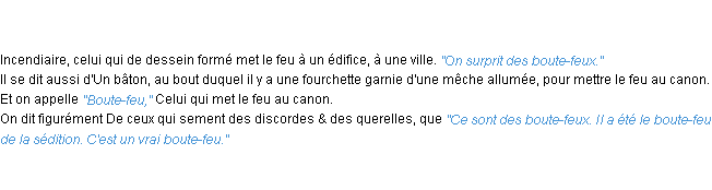 Ancienne signification éditée en 1835 pour le terme « boute-feu » par l’Académie Française.