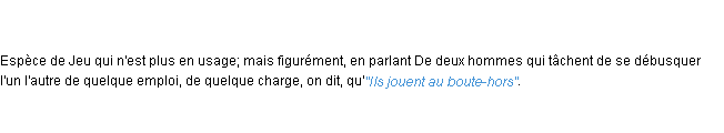 Ancienne signification du terme « boute-hors », parution de 17962, dictionnaire académique Français.